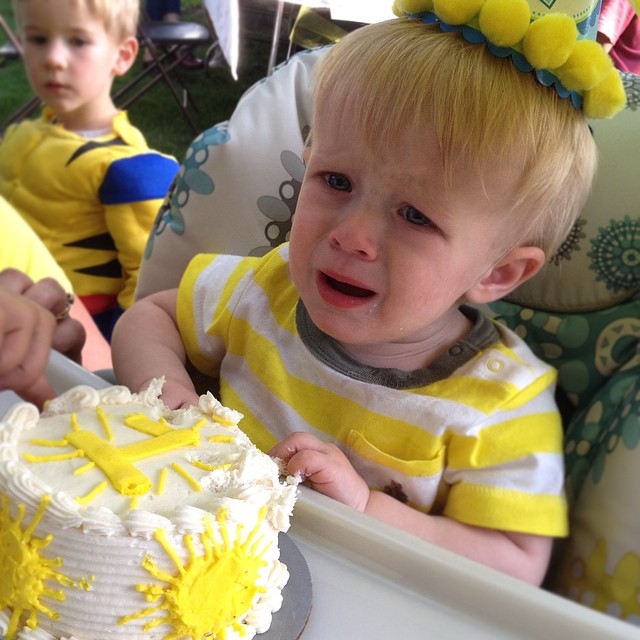 It was his party and he cried cuz he wants to. Happy first bday #babyoliver ! Did not like smashing the cake …